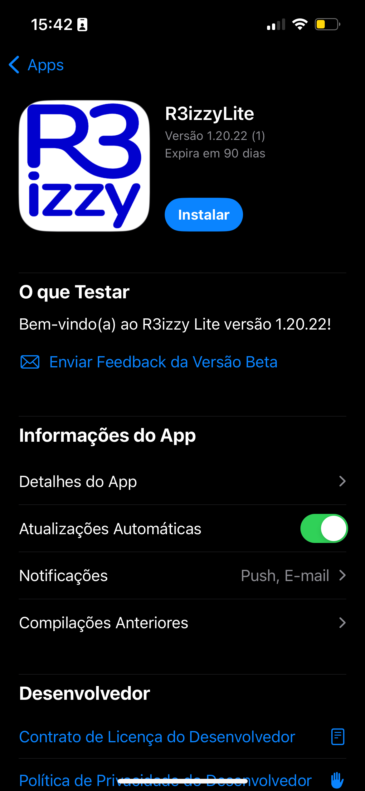 Seguem abaixo os passos para a instalação do aplicativo R3izzy através do iPhone (Testflight):