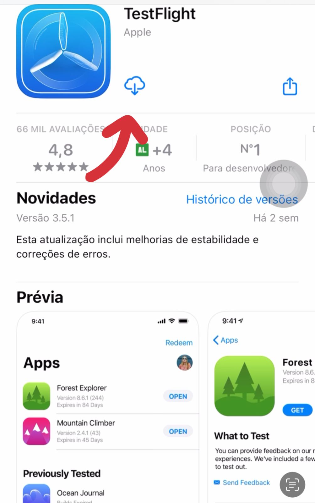 3. Agora, clique em Get TestFlight from the App Store. Clique em baixar;