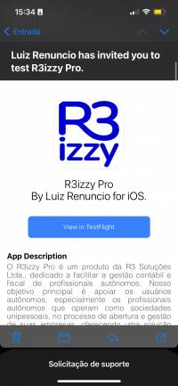 1. Verifique se você recebeu um e-mail do Testflight, com o título “Luiz Renuncio has invited you to test R3izzy Pro.”;